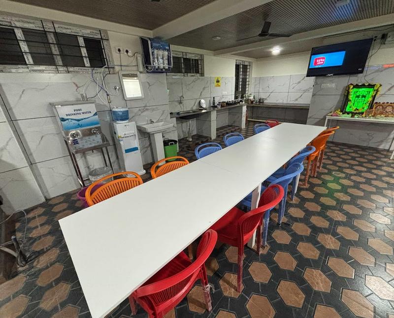 Our ground floor features a spacious dining hall with a common TV and Refrigerator. Residents can store personal items like milk and fruits, or cook their own light meals in the dedicated pantry area.