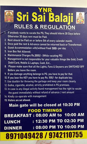 © 2026 YNR Sri Sai Balaji Co-Living. All rights reserved.